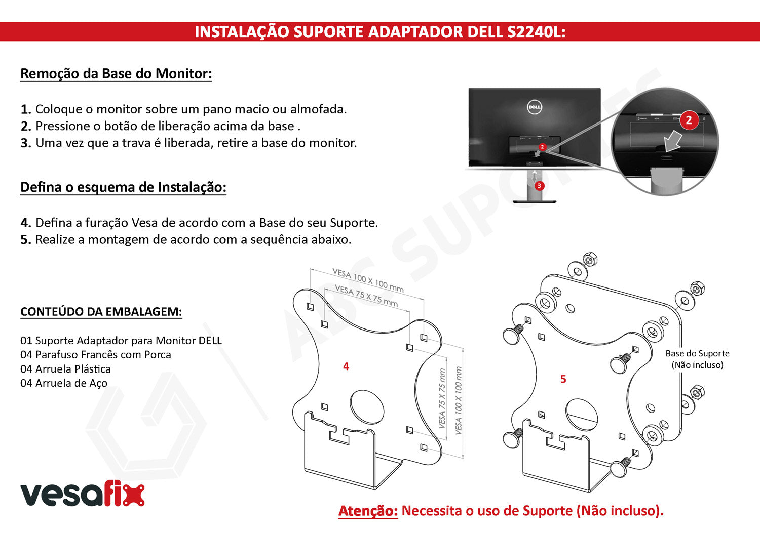 Suporte Adaptador para Monitor Dell S2240L S2340L Sem Furação Vesa